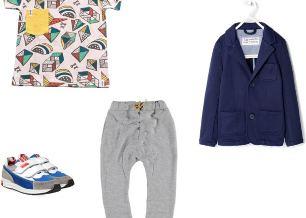 Lentekriebels? Deze look mag je niet missen! Een fris shirt van Indikidual met vliegers en een contrasterend geel borstzakje dragen we op de grijze sweatpants van Little Pieces met ook weer zo een leuk geel contrasterend detail. Oversized blazer van Mango Kids en Red-Rag sneakers aan, bal mee en spelen maar! 1234