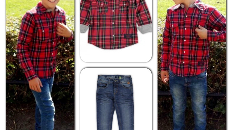 De todays outfit is van Thijmen. Hij draagt een slimfit jeans van Tumble ’n Dry, met stretch, dus ondanks het model toch bewegingsvrijheid. Het geruite rode hemd al veel gezien bij de grote mannen labels en zoals je ziet staat het bij eigenwijze jongetjes nog leuker . Combinatie tips? Draag de blouse open met een cool shirt met tekst, of draag er een gebreid vest eroverheen. En de broek lekker baggy…