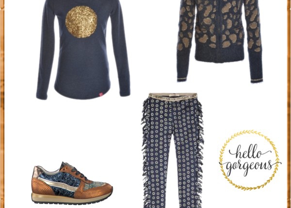 Furry meets bohemian en blauw meets goud. Deze outfit is zo ons! Items met print en franjes en wij zijn verkocht. Ook wel een hele mooie dit, de legging met franjes van R’Belle. Een outfit in keurig matching colours maar wel spannend door de diverse stoffen, prints en dragen in lagen. Want een vest als bovenlaag is toch wel het…