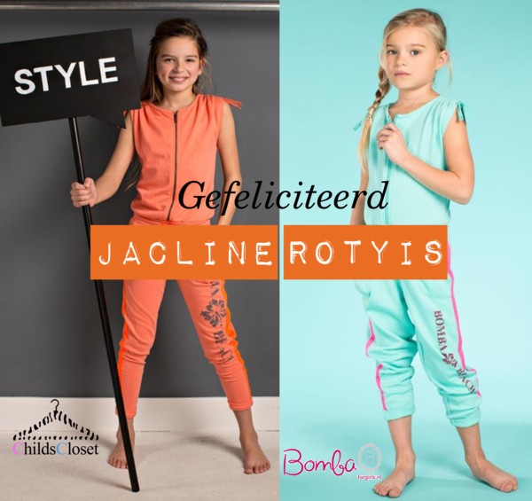 Gefeliciteerd Jacline! Kun je ons je adres mailen naar Debbie@childscloset.nl zodat wij de jumpsuit naar je toe kunnen sturen?