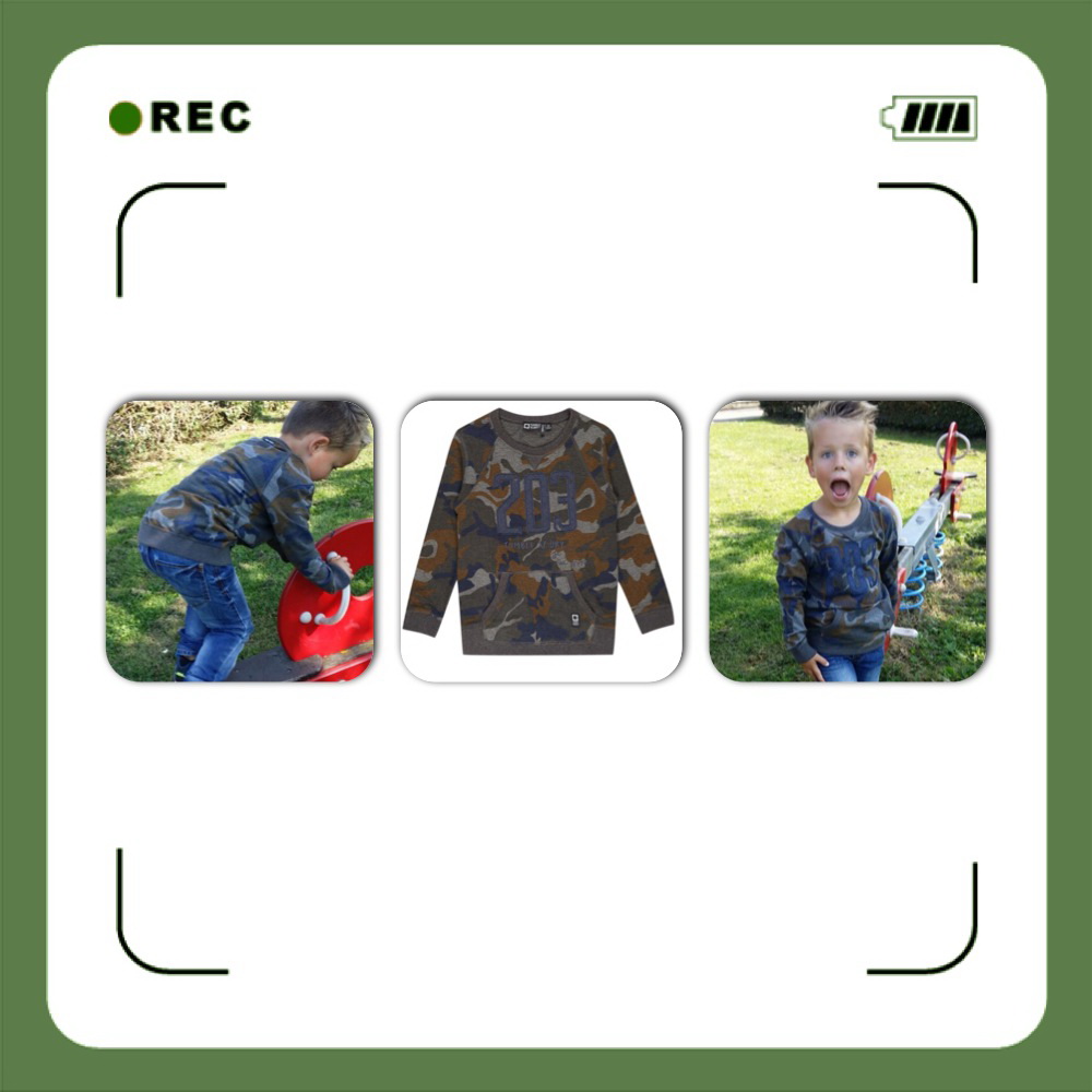 Wat een cool merk is dit toch. Dat deze Tumble ’n Dry sweater in stevig sweatstof ook nog eens goed draagzaam is, is wel duidelijk. Boys will be boys maar wel met een hippe army print aan, toch? Aan de voorzijde een tunnelzak als stoer detail. En die denim applicatie samen met de camouflageprint, dat maakt de sweater. Ivan voelt zich er lekker in, zo te zien. En dat willen we! Je shopt de sweater bij Olliewood of Ko&Flo.