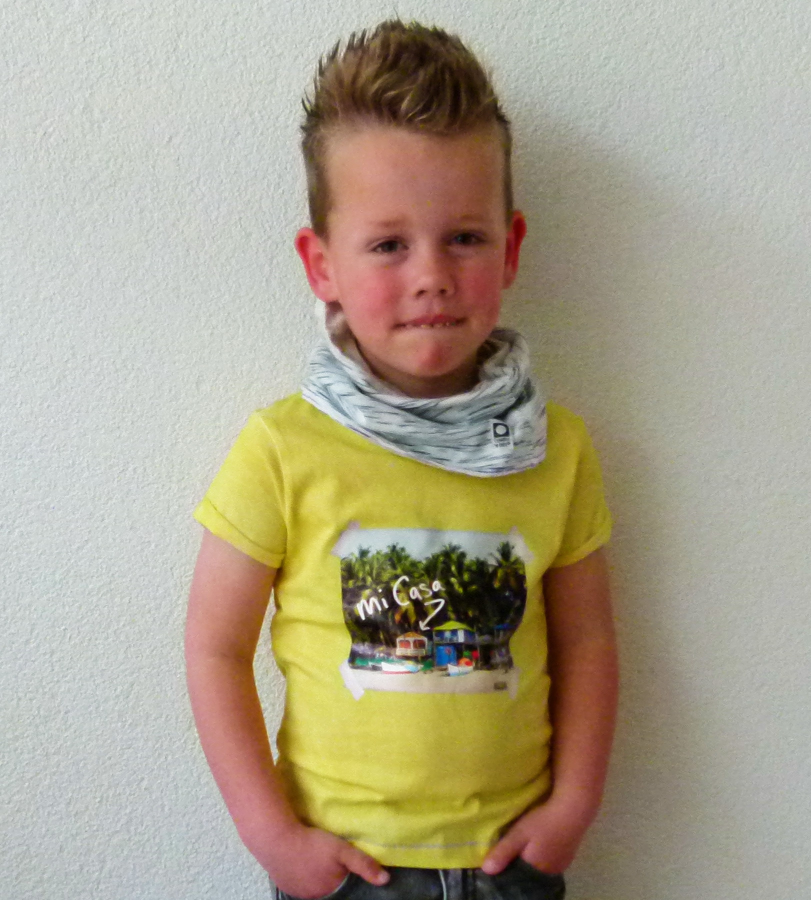 Watch out moeders! Bomba heeft ook een jongenslijn. Zie hier alvast een voorproefje van Ivan in Bomba boys. Coole shirts, sweaters en shorts, met deze zonnige prints en afbeeldingen, waan je je meteen de zomer in. Het perfecte voorbeeld is deze Mi Casa tee. Om de look nog niet helemaal aloha te maken, combineren we de tee met de perfecte accessoire om dit gevoel een beetje af te remmen maar ook af te stylen. Een frisse colshawl van het ook al zo stoere Tumble ‘N Dry in een juist helelaam niet zo uitgesproken kleur zijn samen een sterke partij.