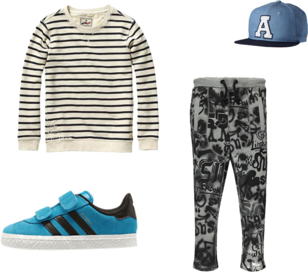 Oogt een jurkje met bretonse streep (musthave!) voor de mama’s sophisticated. Voor jongens kun je er alle kanten mee op. De sweater met bretonse streep in deze outfit met ubercoole graffiti pants en blauwe sneakers geeft een trendy laidback look maar met een effen chino en witte allstars loopt jouw jongen er juist weer heel casual chic bij.