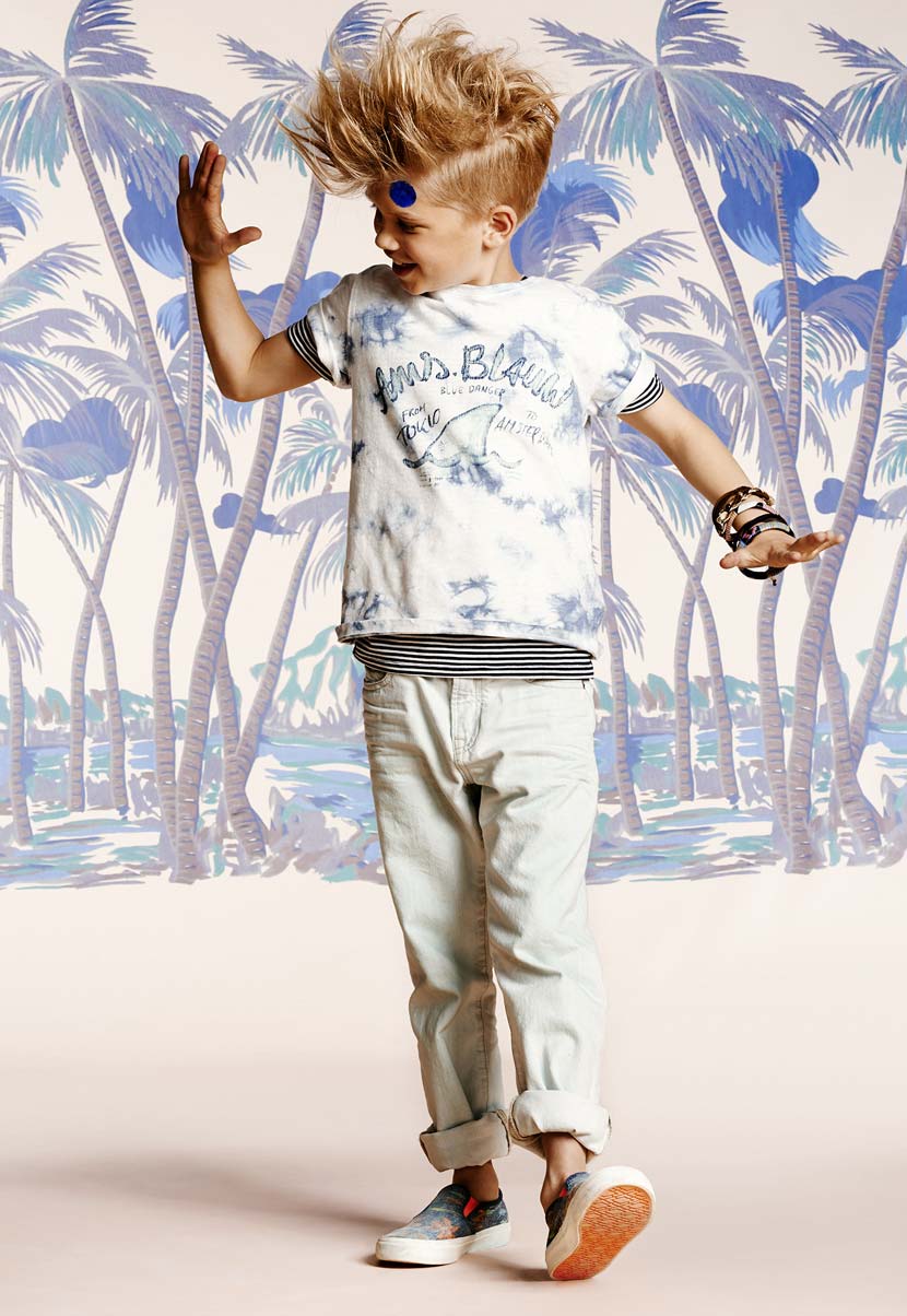 De top van de Nederlandse boysfashion, Scotch Shrunk. Het is net alsof je tussen wolkenkrabbers en gevaarlijk hoge palmbomen “tarzant” met de nieuwe urban jungle prints uit de Rumble in the jungle collectie. Met katoenen chino shorts gemaakt van een speciale lichtgewicht twill in een zomerse dye en omkeerbare shirts waar je dubbel draagplezier van hebt, voor nu de effen kant en in de zomer ga je voor de tropische look met de andere zijde. Of pak het anders aan en spring op je surfplank en ga de golven te lijf met de nieuwe coole strandprints. Cowabunga, maat met de Catching waves collectie. Sweaters in alle denkbare kleuren met print of opdruk, stoere cargo shorts maar ook de all over print tees en overhemden aangevuld met te coole hoedjes, kettingen en swimwear. Scotch Shrunk valt nooit tegen, ieder item an sich is een absolute musthave. De perfecte combinatie tussen draagbaar, kwaliteit en high class urban kidsfashion. Je shopt de nieuwe collectie van Scotch Shrunk onder andere hier.