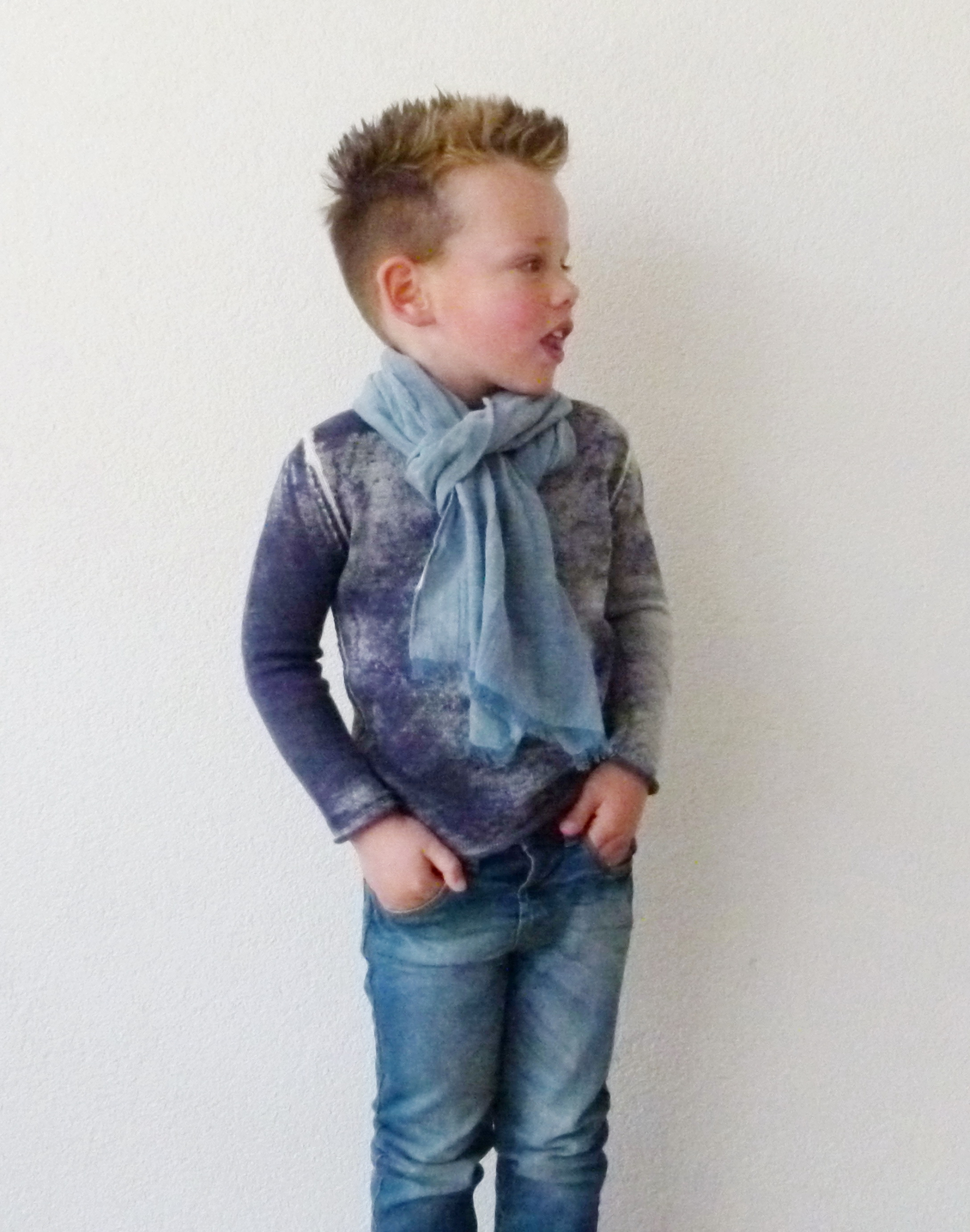 Helemaal ton sur ton is Ivan vandaag maar wel met het accent op de trui van Bomba. Deze fijn gebreide trui met dip dye effect ziet er niet alleen mega cool uit maar staat zo eigenwijs. De jeans heeft een mooie verwassen kleur en is van het altijd stoere Retour. Olds school Vans eronder, kan haast niet mis gaan zo. Leuk toch, in hetzelfde sfeertje als de trui?