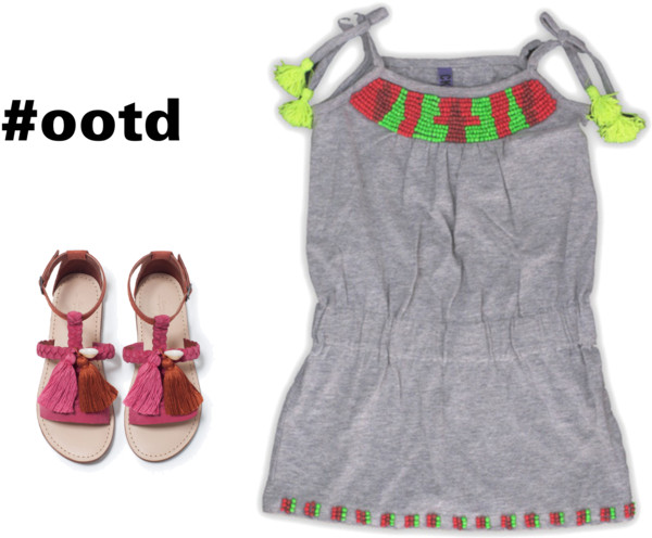 Sjeetje, dat ik dit jurkje nu pas tegen kom, één woord? Musthave! Kwastjes, verstelbare bandjes en bewerkt met kralen, basic maar met wel met goede kleur accenten en helemaal af met de sandaaltjes, die ook al van die leuke kwastjes heeft. Love it! Bohemian voor jouw mini you!En nog een leuke budget look ook. Steal away this outfit of the day? De linkjes staan hier beneden.