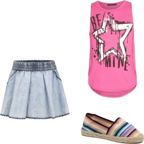 Geen zomer zonder een zwierig maar vooral trendy denim rokje, kleurige Sisley tanktop en cuties van espadrilles en dan ook nog eens een budget outfit of the day. Dit hippe setje kost namelijk nog geen €38,00!