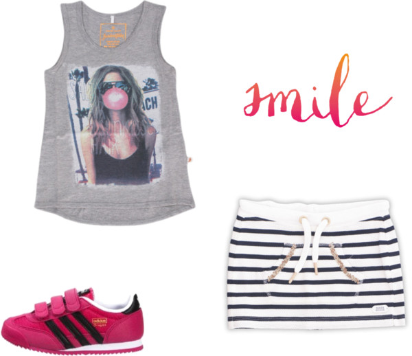 Deze outfit of the day geeft je een big smile! Sportief maar dan wel op zijn meisjes met deze Barbara Farber singlet, Baker Bridge rokje en roze Adidas sneakers.