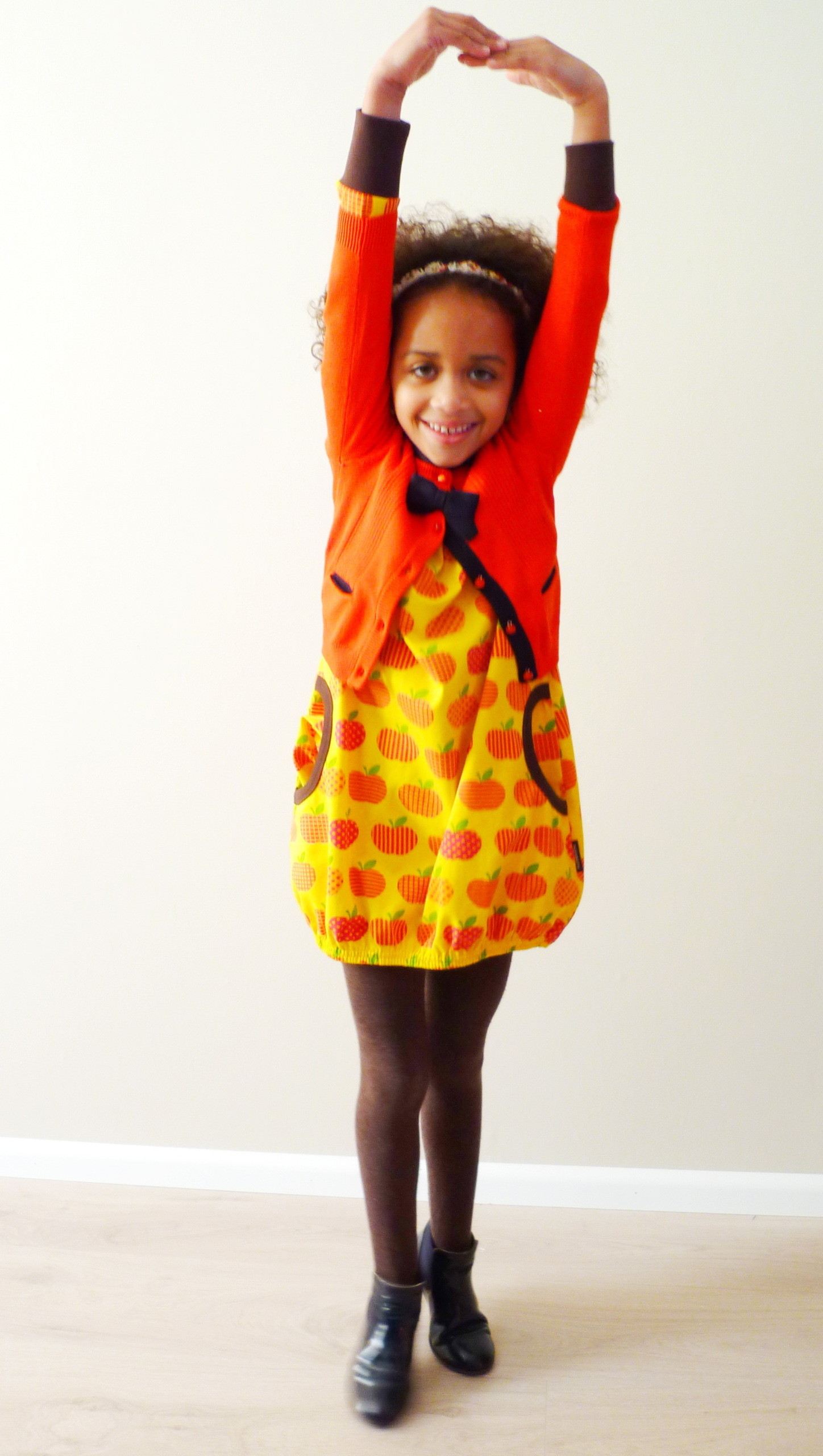 Vrolijk, kleurig en zo comfortabel is dit Maxomorra jurkje. Weer eens iets heel anders en ondanks de retro print kun je er allerlei kanten mee op qua look. In dit geval voor een klassiek Jottum vestje en Zara lak schoentje. Minder braaf? Een legging met print in terugkomende kleuren met coole sneakers doen het ook erg leuk. Benieuwd naar deze items? Onderstaande icoontjes linken je naar de verkopende shops.