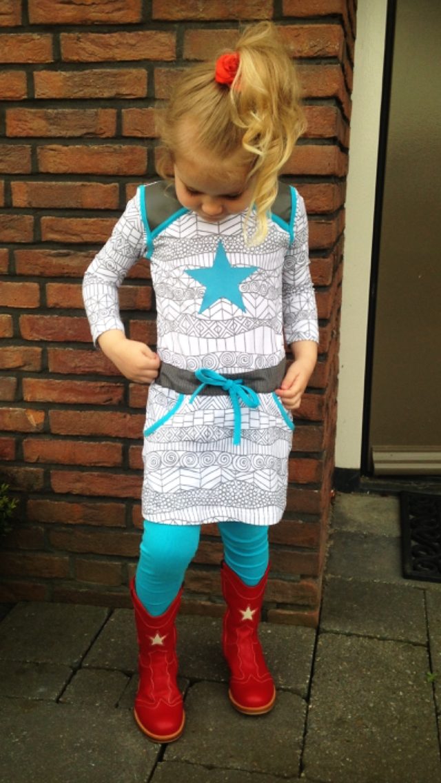 Als een kind zo trots is hier zo op van toepassing. Jolie in love op haar LoveStation22 outfit. En mama net zo. De print, de turquoise accenten, de grijze leren schouderstukken! En hij zit perfect en staat haar zo eigenwijs. Nu ben ik niet zo van de vooraf samengestelde combinaties met leggings maar in dit geval is dat vooroordeel van de baan. Verkocht! Dit setje gaat héél veel gedragen worden. Op de foto met een rood Zecchino D’Oro laarsje, dus geen matching schoentje in de kast? Geen probleem. Het jurkje Macy is ook zo leuk met een sneakertje, komt de sporty twist van dit jurkje goed naar voren. LoveStation22, waren wij al wild van de vorige collectie, het leuke avontuur van Robin en niet te vergeten jullie bijdrage aan het Wereld Natuurfonds, nu weer een dikke 10! Ontzettend bedankt voor dit mooie setje en een vooral heel blij meisje! Meer LoveStation22 bekijken? Ga snel naar de online shop.