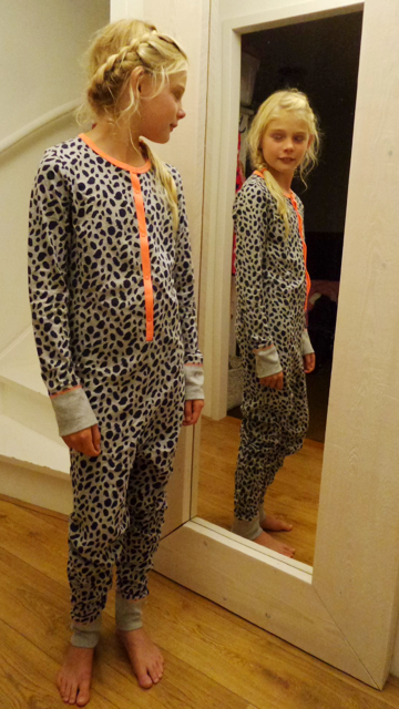 Mooie Julianne slaapt in stijl, in deze onesie met grijs dieren print en boord in contrasterende kleur, van de Hema. De musthave van het seizoen is niet alleen comfortabel en zacht maar ook nog eens fashionable en heerlijk tijdens het bank hangen. Aan de voorkant zijn drukknopen en aan de onderkant van de mouwen en broekspijpen zit elastiek dus geen gepriegel met aan en uit doen. Deze onesie online bestellen en net als Julianne fashionable op de bank? Dat kan, via deze link