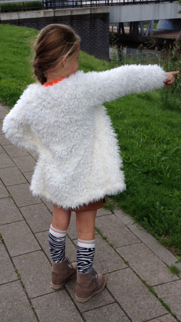 Je kindje trendy voor de dag laten komen? Met deze essentials kan het niet mis gaan en is jou mini miss hipper dan hip. Larissa draagt dan ook twee van dé trends van dit najaar maar wel met een kinderlijke twist gestyled. De kniekousen kennen we al maar zijn perfect onder de najaarsjurkjes, nu de temperaturen nog net te warm zijn voor maillots en leggings. De witte jas is volgens de grote mode bloggers samen met, hij kwam deze week ook al voorbij, de suède trend, iets wat niet in de garderobe mag ontbreken. Hoe cool is dan deze witte furry vest, die je de komende maanden zeker nog als jas kan doordragen? Het bruine fake-leather jurkje met teddy voorpand en sierrandjes afgewerkt met subtiele glitters langs beide zijkanten en suède look achterpand is in één woord , beeldig! Het vest en het jurkje komen zeker op onze wil ik hebben lijstje. Veterlaarsje aan de voetjes en Larissa doet niet onder voor de grote mode iconen maar dan wel met een kinderlijke knipoog. Het jurkje en het furry vest shop je onder andere hier of via de linkjes en kleine icoontjes onderaan het blog.