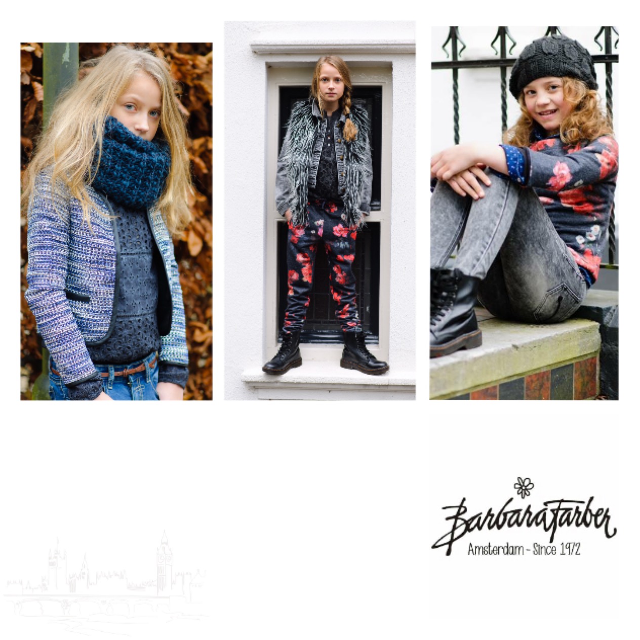Na een spetterende kick off begin 2015 is Barbara Farber terug van weggeweest. Met een collectie die duidelijk met onze baby’s en peuters van toen is meegegroeid. Stylish, fashionable maar met een stoere statement, zonder uit het oog te verliezen dat het om kindermode gaat. Met een warm onthaal van de mama’s werd het snel duidelijk, Barbara Farber is terug en verovert nu ook menig modelievend meisjes hart. Na een spetterende zomercollectie keken wij dan ook uit naar wat de wintercollectie voor meiden van 6 tot 16 jaar zou brengen. Nou alles! Een stoere collectie met een girly uitstraling in vintage grijs, zwart, wit en warmblauw met trendkleur koraal en poederroze als accentkleuren. Dit verwerkt in trendy furry vesten, comfy sweaters in allover bloemenprints, mooie knitts, stoer mêlee en chic bouclé terugkomend in stoere sweats, mooie jasjes en onze ‘spring in het oog’ het fake fur gilet. Barbara Farber geeft je alle keus de stijl te creëren die jouw dochter aanstaat en vooral te zijn wie zij is. Welke weg slaan jullie in dit seizoen? Gaan jullie voor punk, hipster of klassiek? Barbara Farber gaat in ieder geval met je mee. Alle items bekijken en de juiste stijl bepalen? Kijk dan op Kinderkleding-tekoop of Kleertjes.com