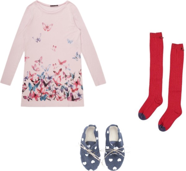 Rood met roze, de combi trend van nu. Zijn jullie er al aan gewend? De Sisley longsleeve is lang genoeg om als jurkje door te gaan ( super leuk als je de prijs ziet). Rode Bengh overknees en die te schattige Anniel denim hearts eronder.