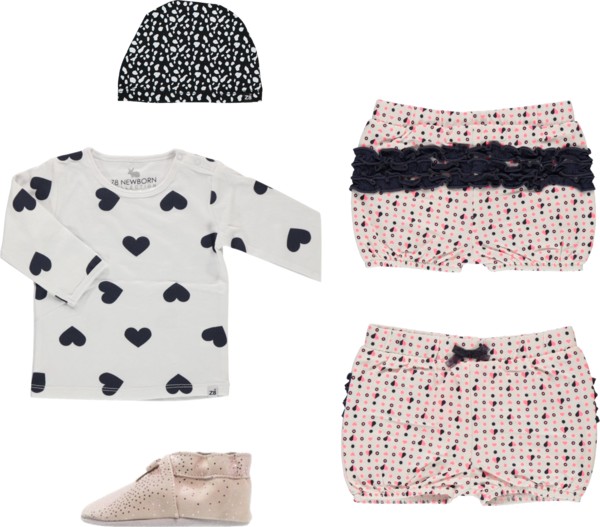 Het bewijs dat roze voor baby’s iets is wat ik niet kan weerstaan. Dit lieve, zachte kleurtje roept altijd een gelukmakend gevoel op, ook al sta ik erom bekend vaak items te kiezen met zwarte accenten. Toen de J’s nog in de Bugaboo lagen kon het mij niet roze genoeg zijn. Ruches idem dito, datzelfde gevoel. Dit snoezige broekje van Bambidano is voor mij dan ook de perfecte combi (of moet ik zeggen match) tussen mijn voorliefde voor baby roze en stoer zwart. Als ik nu een baby girl zou verwachten dan was dit broekje met dots zeker mijn ultieme catch. Hartjes, ruches, roze en zwart en laten we de glitters op de schoentjes niet vergeten. Life is always better with a closet full of tulle, frills and glitter gaat in dit geval zeker op.