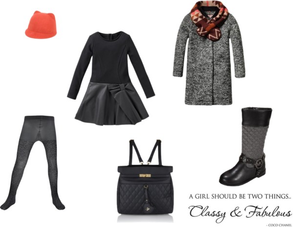 Een prachtig jurkje van Jottum die het met de feestdagen in het vooruitzicht heel goed zal doen. Leuk detail, de leren strik. Om er een klassieke draai aan te geven het zwart / grijze aangehouden in de andere items. Behalve het hoedje, het blijft een outfit voor kids. Hoe vinden jullie de tas?