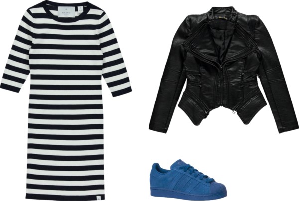 Drie items die niet mogen ontbreken. Een (imitatie) leren jasje , een jurkje en sneakers. Waarom? Het leren jasje is het ultieme item tijdens de seizoen switch. Een jurkje idem dito, nu met een maillot en over een paar maandjes leuk met afgezakte kniekousen, bovendien uitstekend te dragen bij diverse gelegenheden. Stoer met een kistje en gekleed met een laarsje. Of…zoals…