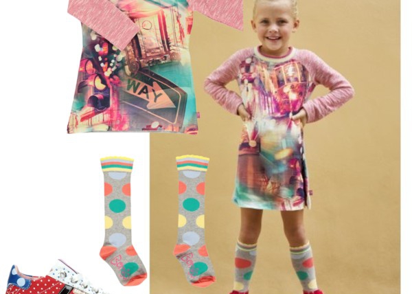 Niet opvallen gaat voor dit unieke all-over print jurkje met zacht glitterdraad in de mouwen van Bomba niet op. Matching kniekousen om de kuiten en uber vette Red-Rag sneakers met dots in een té coole kleurcombinatie aan de voetjes, maak je zo een sprong het voorjaar in. Jurkje, Bomba | Kniekousen, Bomba | Sneakers via Red-Rag |