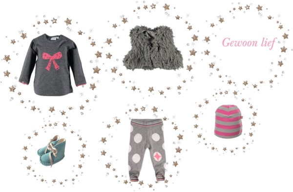 A Wat zijn grijs met roze toch mooi samen. Een zachte combi en niet te uitbundig. De Donsjes houden het meisjes gehalte in ere maar doorbreken met het blauw net die keurige kleur combi.